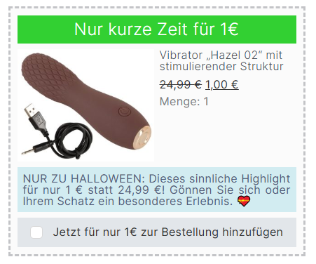An der Kasse erscheint das Premium-Geschenk (Wert 24,99€) automatisch. Häkchen setzen – und für nur 1€ ist es Ihres. Praktisch geschenkt!